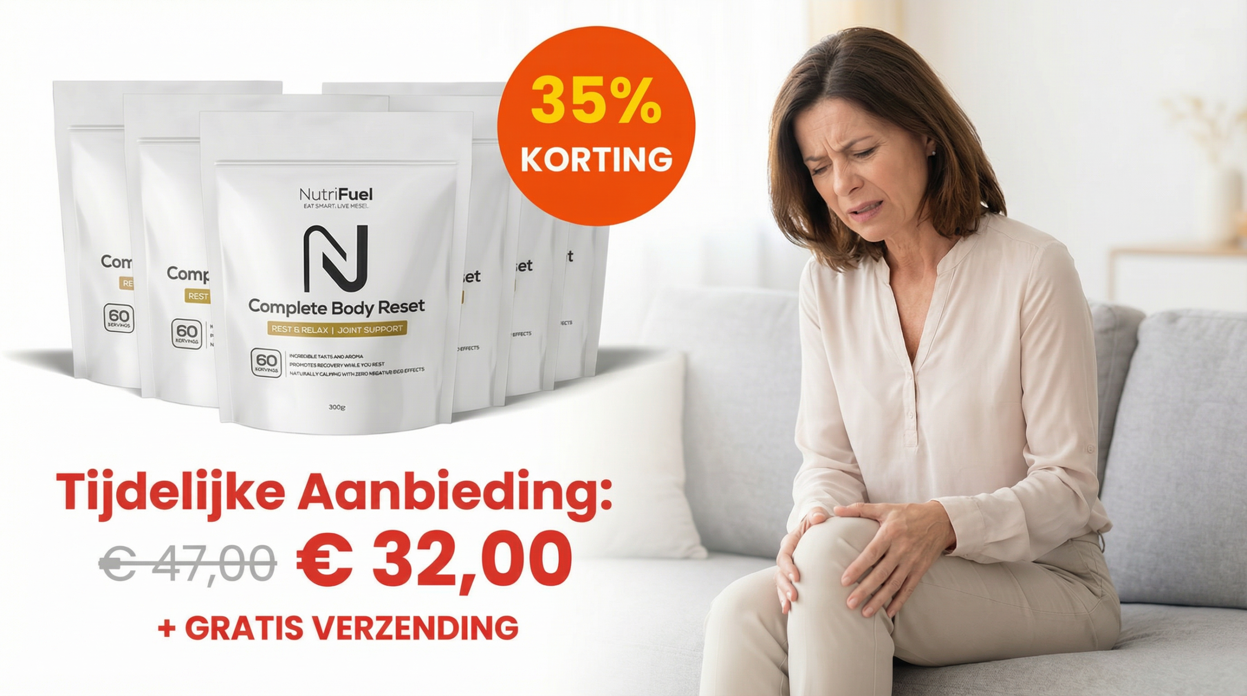 NutriFuel Complete Body Reset werkt van binnenuit — binnen 2 tot 4 weken beginnen de eerste gebruikers minder opstartpijn en kniestijfheid te voelen en bewegingen die voorheen pijnlijk waren worden weer toegankelijker.