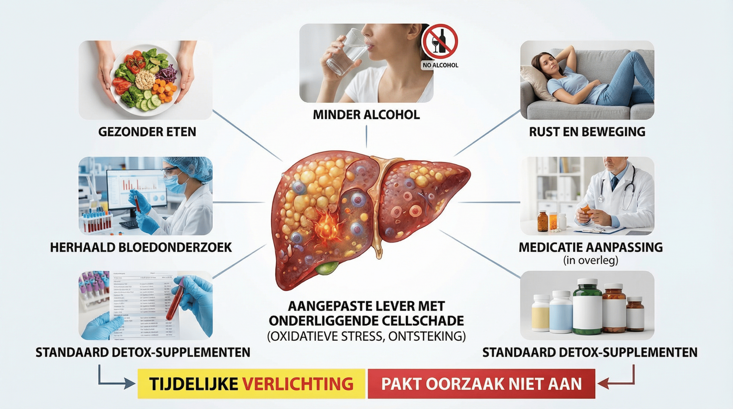 Want anders dan veel mensen denken… herstellen beschadigde levercellen zichzelf niet vanzelf zolang de oxidatieve stress en de onderliggende oorzaak actief blijven.