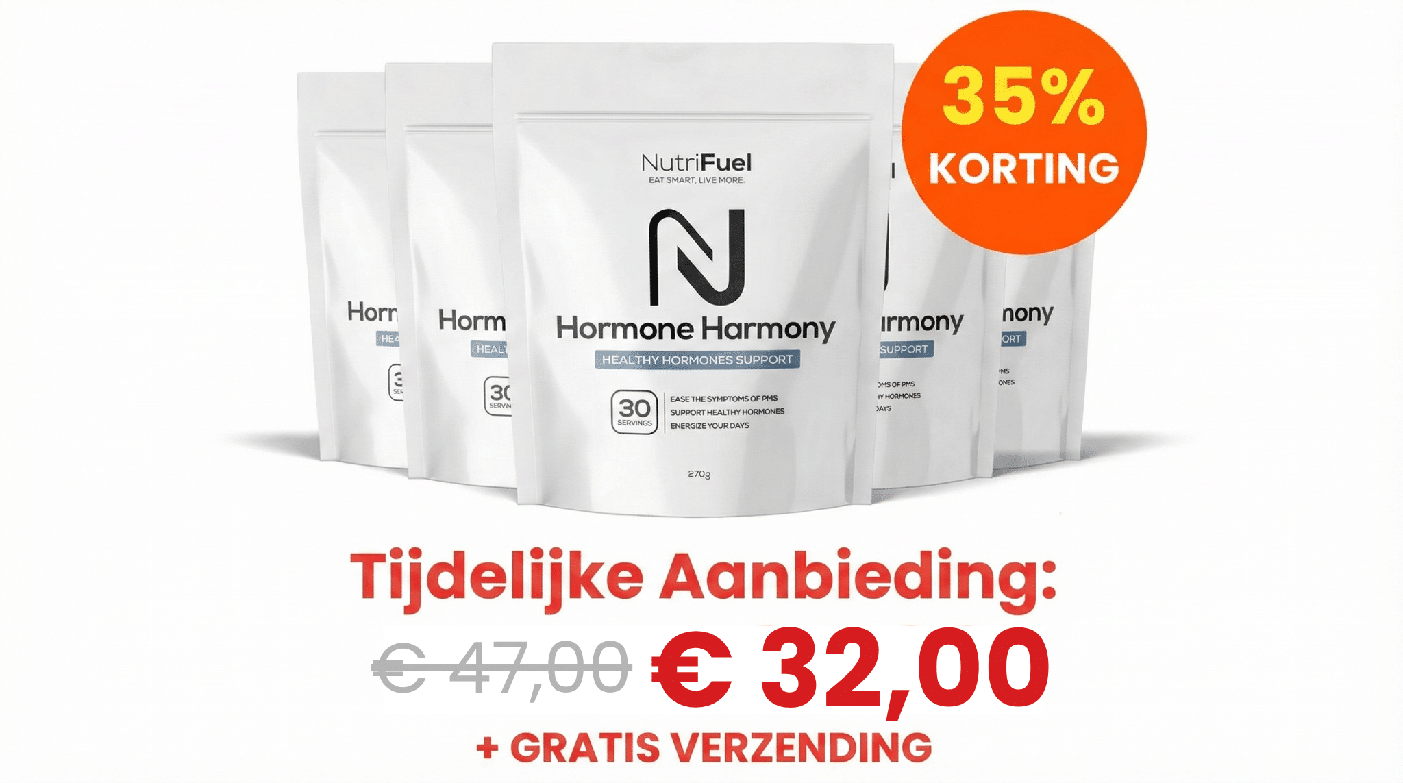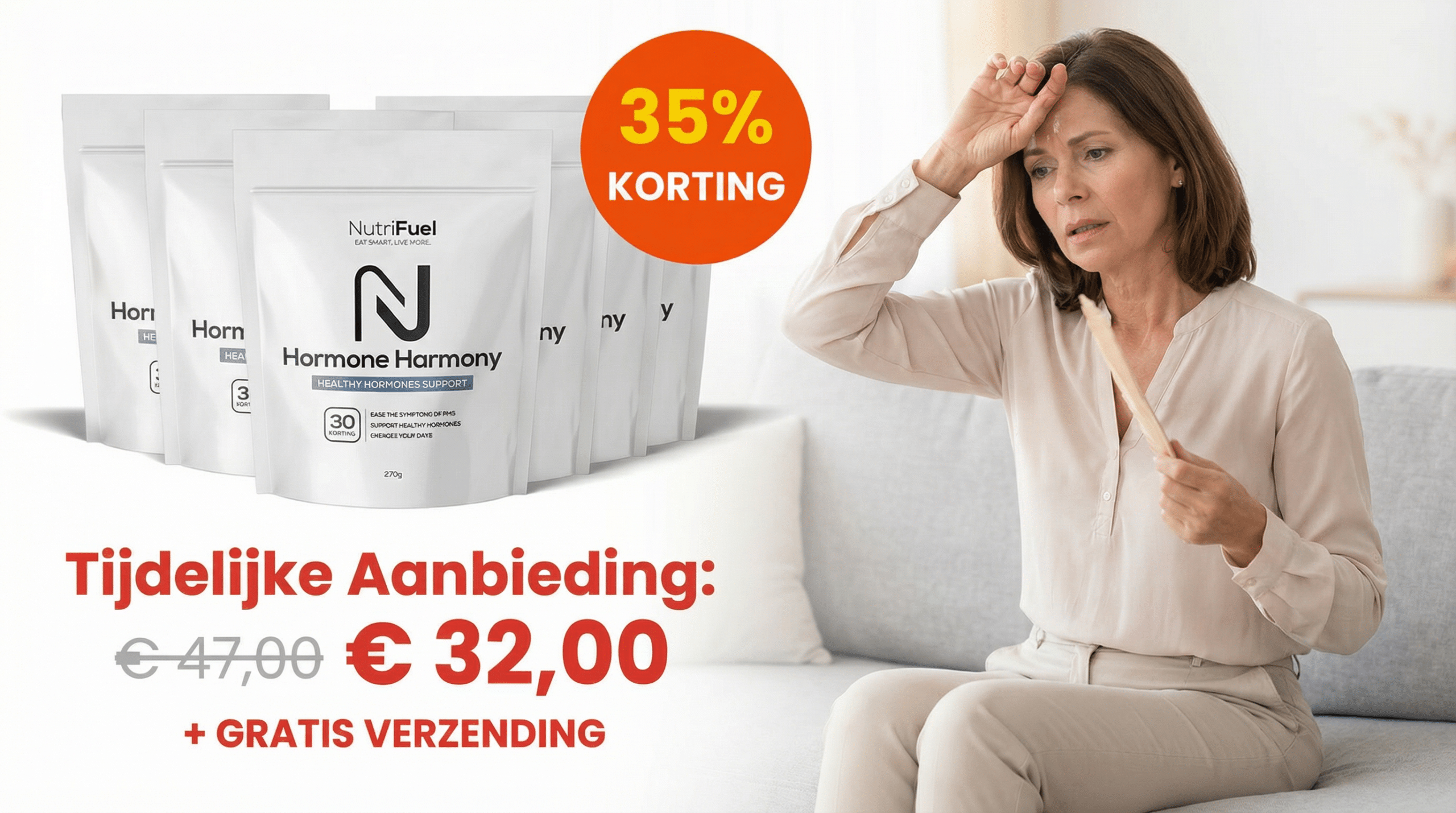 Nutrifuel Hormone Harmony werkt van binnenuit — binnen 2 tot 4 weken beginnen de opvliegers af te nemen, de nachten rustiger te worden en de stemming te stabiliseren.